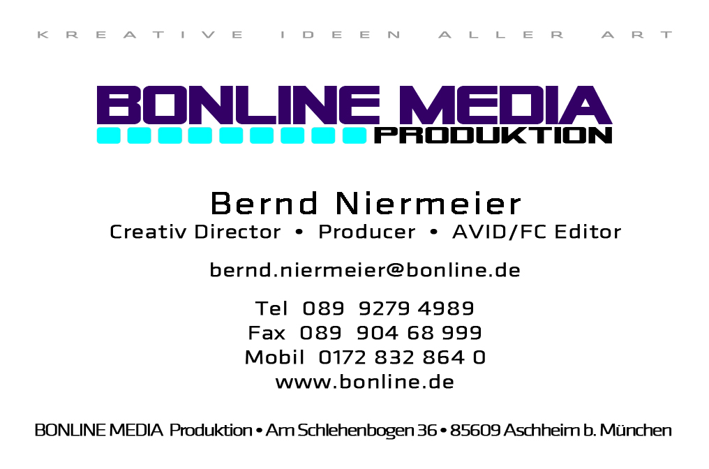 BONLINE MEDIA - AM SCHLEHENBOGEN 36 - 85609 ASCHHEIM - TEL: +49 (0) 9279 4989